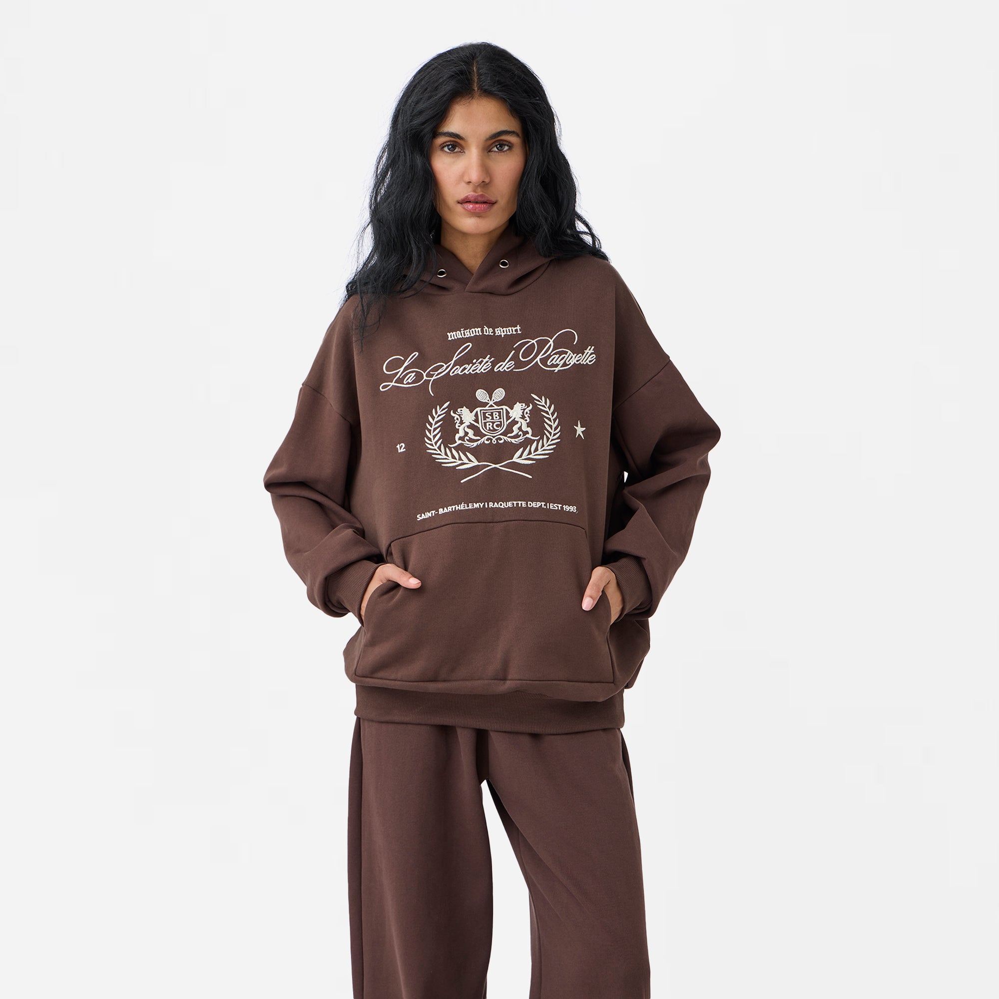Lion Crest Raquette Hoodie in Chocolate Brown